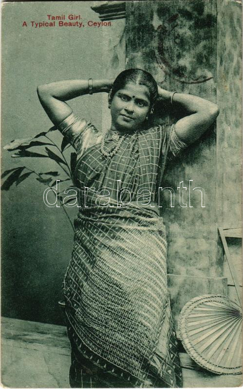 Tamil girl, a typical beauty from Ceylon / Lány Sri Lanka-ról (fl) https://www.darabanth.com/hu/448-Gyorsarveres/448.0/Kepeslapok/Folklor~1500057/Tamil-girl-a-typical-beauty-from-Ceylon-Lany-Sri-Lanka-rol-fl~II2968429