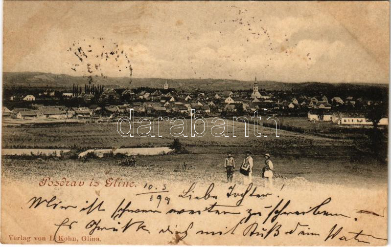 1899 (Vorläufer) Glina, látkép / general view (fl) https://www.darabanth.com/hu/448-Gyorsarveres/448.0/Kepeslapok/Horvatorszag~1500009/1899-Vorlaufer-Glina-latkep-general-view-fl~II2964599