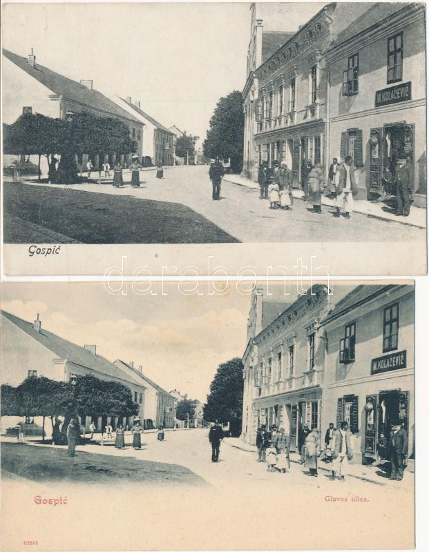 Goszpics, Gospic; - 2 db RÉGI város képeslap, M. Kolacevic üzlete / 2 ... https://www.darabanth.com/hu/448-Gyorsarveres/448.0/Kepeslapok/Horvatorszag~1500009/Goszpics-Gospic-2-db-REGI-varos-kepeslap-M-Kolacevic-uzlete-2-pre-1945-town-view-postca~II2966533