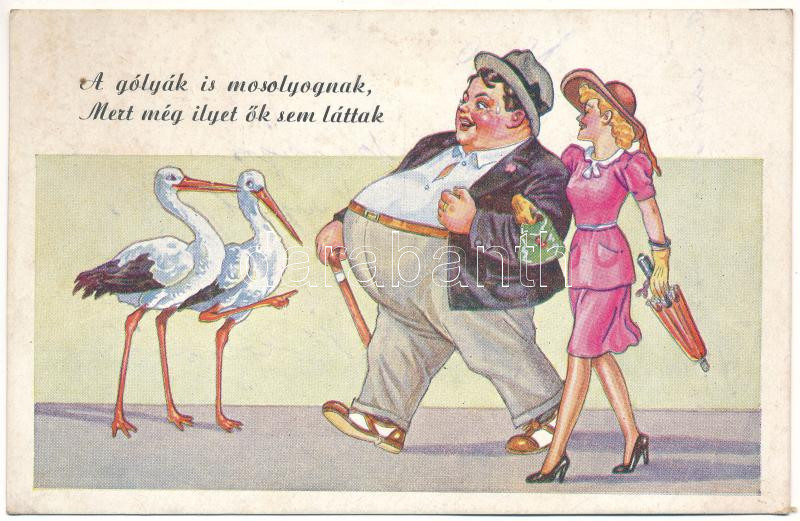 Leírás: A gólyák is mosolyognak, mert még ilyet ők sem láttak / Marriage humour (ázott / wet damage)