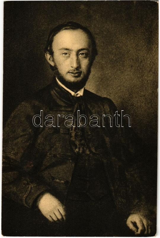 Kiss József (1843-1921) zsidó származású magyar költő, szerkesztő, a Petőfi Társaság tagja. Ifjúkori arckép, Borsos József festménye. Országos Magyar Zsidó Múzeum / Hungarian Jewish poet. Judaica art postcard. Published by the Hungarian Jewish Museum s: Borsos József