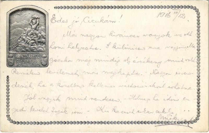 1916 Isonzo-Armee 1915 feliratú jelvény képe tábori levelezőlapon / WW... https://www.darabanth.com/hu/448-Gyorsarveres/448.0/Kepeslapok/Katonai~1500067/1916-Isonzo-Armee-1915-feliratu-jelveny-kepe-tabori-levelezolapon-WWI-Austro-Hungarian-KuK~II2967392