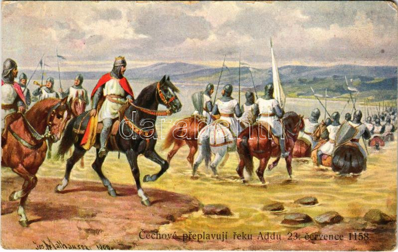 Leírás: 1917 Cechové preplavují reku Addu 23. cervence 1158., F. J. Jedlicka s: Jos. Mathausen