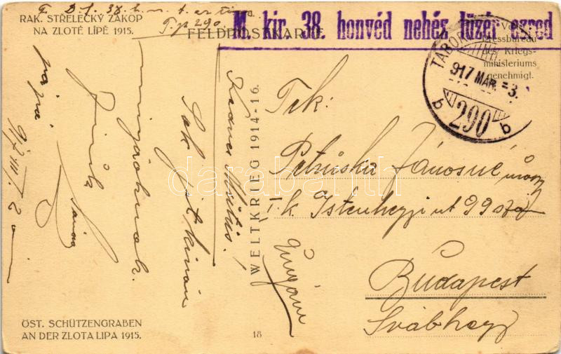 1917 Rak. Strelecky Zakop na Zloté Lipe / Öst. Schützengraben an der Zlota Lipa / WWI Austro-Hungarian K.u.K. military trenches + "M. kir. 38. honvéd nehéz tüzérezred" (fl)