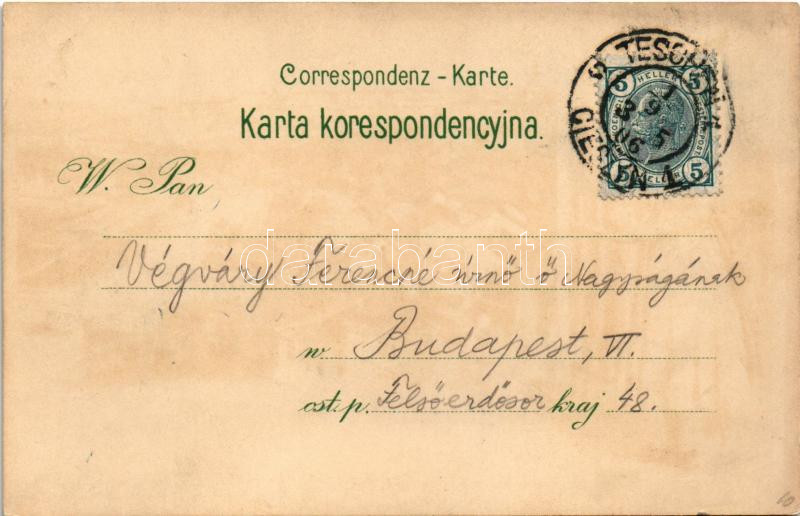 1906 Cieszyn, Teschen; Wiejska dziewczyna / Folklore. Edw. Feitzinger ... https://www.darabanth.com/hu/448-Gyorsarveres/448.0/Kepeslapok/Lengyelorszag~1500032/1906-Cieszyn-Teschen-Wiejska-dziewczyna-Folklore-Edw-Feitzinger-No-501-p-Art-Nouveau-litho~II2966192
