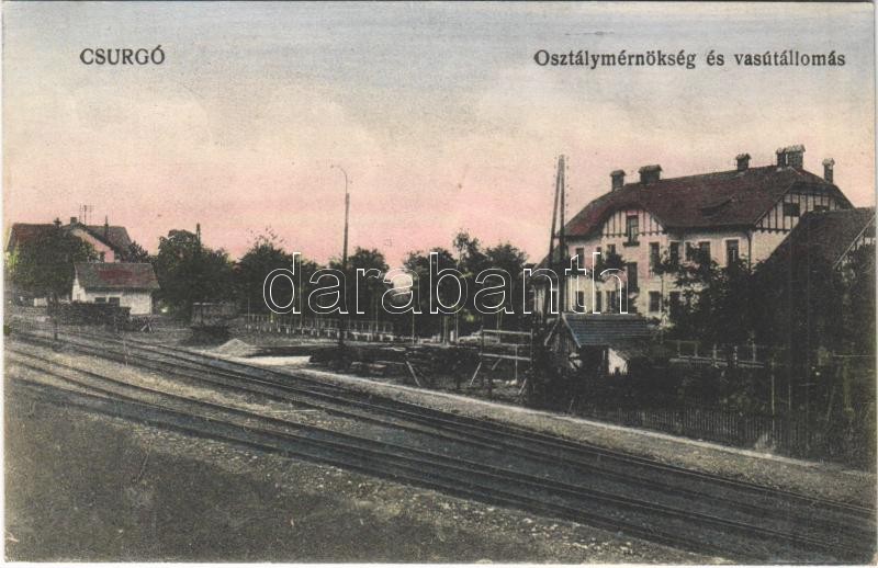 Leírás: 1927 Csurgó, Osztálymérnökség és vasútállomás. Oszeszly M. Viktor kiadása