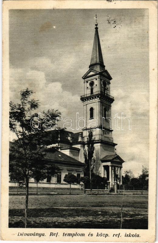 Leírás: 1937 Dévaványa, Református templom és iskola. Demeter István kiadása (EK)