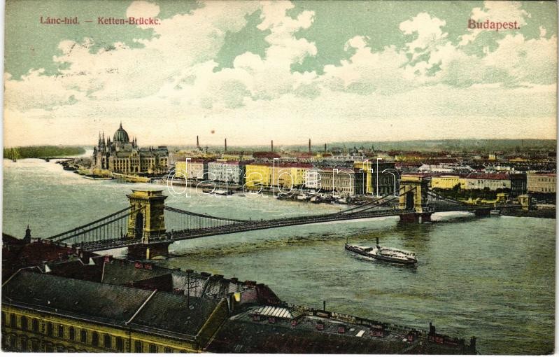Budapest, Lánchíd, gőzhajó. 663-1907. https://www.darabanth.com/hu/448-Gyorsarveres/448.0/Kepeslapok/Magyarorszag~1500013/Budapest-Lanchid-gozhajo-663-1907~II2171575