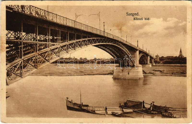 Szeged, Közúti híd, csónakok, faúsztatás (fl) https://www.darabanth.com/hu/448-Gyorsarveres/448.0/Kepeslapok/Magyarorszag~1500013/Szeged-Kozuti-hid-csonakok-fausztatas-fl~II2967292