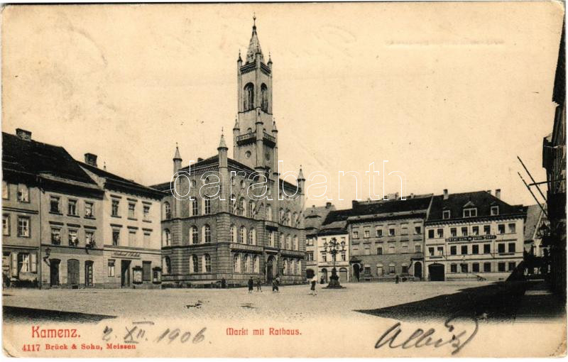 1906 Kamenz, Markt mit Rathaus, Hotel zum goldn, Stern / square, empty... https://www.darabanth.com/hu/448-Gyorsarveres/448.0/Kepeslapok/Nemetorszag~1500037/1906-Kamenz-Markt-mit-Rathaus-Hotel-zum-goldn-Stern-square-empty-market-town-hall-hotel-sho~II2971343