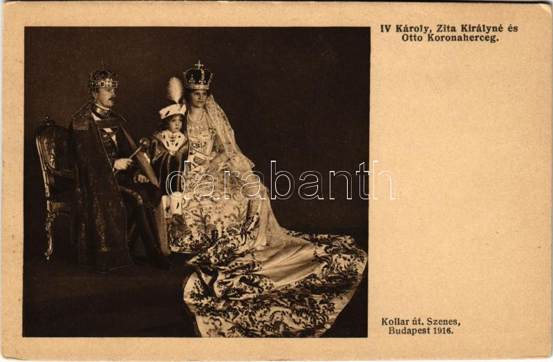 IV. Károly, Zita királyné és Otto koronaherceg. Kollár út. Szenes, Bud... https://www.darabanth.com/hu/448-Gyorsarveres/448.0/Kepeslapok/Uralkodo-Politikus~1500083/IV-Karoly-Zita-kiralyne-es-Otto-koronaherceg-Kollar-ut-Szenes-Budapest-1916~II2968531
