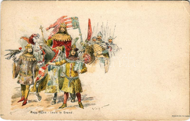 Nagy Lajos. Ezredéves Országos Kiállítás / Louis I of Hungary. Hungarian Millennium Exhibition art postcard. barna 2 Kr. Ga. litho (kis szakadás / small tear)