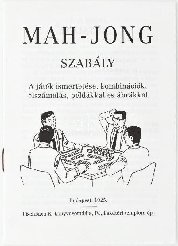 Hergár Emil: Mah-jong szabály. Terebess, Budapest, 1997. Az 1925-ös Fi... https://www.darabanth.com/hu/448-Gyorsarveres/448.0/Konyvek/Konyvek-Egyeb-ritkasagok~2000024/Hergar-Emil-Mah-jong-szabaly-Terebess-Budapest-1997-Az-1925-os-Fischbach-K-kiadas-reprint-~II2971487