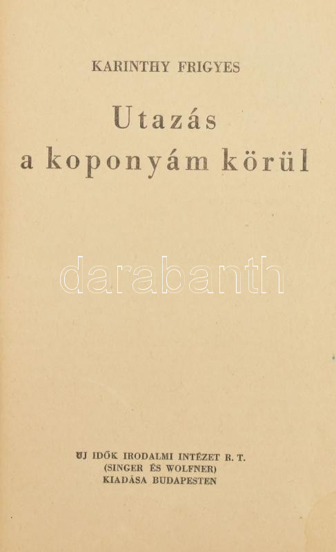 Karinthy Frigyes: Utazás a koponyám körül. Bp.,(1946), Uj Idők (Singer... https://www.darabanth.com/hu/448-Gyorsarveres/448.0/Konyvek/Konyvek-Egyeb-ritkasagok~2000024/Karinthy-Frigyes-Utazas-a-koponyam-korul-Bp-1946-Uj-Idok-Singer-es-Wolfner-Kiadoi-fC3~II2948581