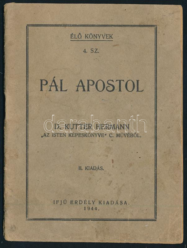 Pál apostol. D. Kutter Hermann "Az Isten képeskönyve" c. műv... https://www.darabanth.com/hu/448-Gyorsarveres/448.0/Konyvek/Konyvek-Egyeb-ritkasagok~2000024/Pal-apostol-D-Kutter-Hermann-Az-Isten-kepeskonyve-c-muvebol-Elo-Konyvek-4-1944-IfjC3~II2974528