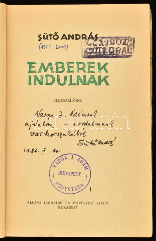 Sütő András: Emberek indulnak. DEDIKÁLT! Bukarest, Állami Irodalmi és ... https://www.darabanth.com/hu/448-Gyorsarveres/448.0/Konyvek/Konyvek-Egyeb-ritkasagok~2000024/Suto-Andras-Emberek-indulnak-DEDIKALT-Bukarest-Allami-Irodalmi-es-Muveszeti-Kiado-ElsC5~II2976666