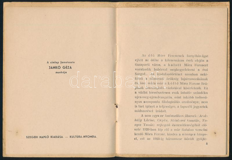 Tárnok László: A költő Móra Ferenc. Szeged, 1942. Kiadói papírkötés, k... https://www.darabanth.com/hu/448-Gyorsarveres/448.0/Konyvek/Konyvek-Egyeb-ritkasagok~2000024/Tarnok-Laszlo-A-kolto-Mora-Ferenc-Szeged-1942-Kiadoi-papirkotes-kopottas-allapotban~II2974530