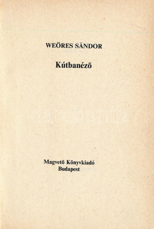Weöres Sándor: Kútbanéző. (Weöres Sándor utolsó verseskötete). A szerző rajzaival. Bp., 1987, Magvető. Első kiadás. Kiadói egészvászon-kötés, kiadói papír védőborítóban.