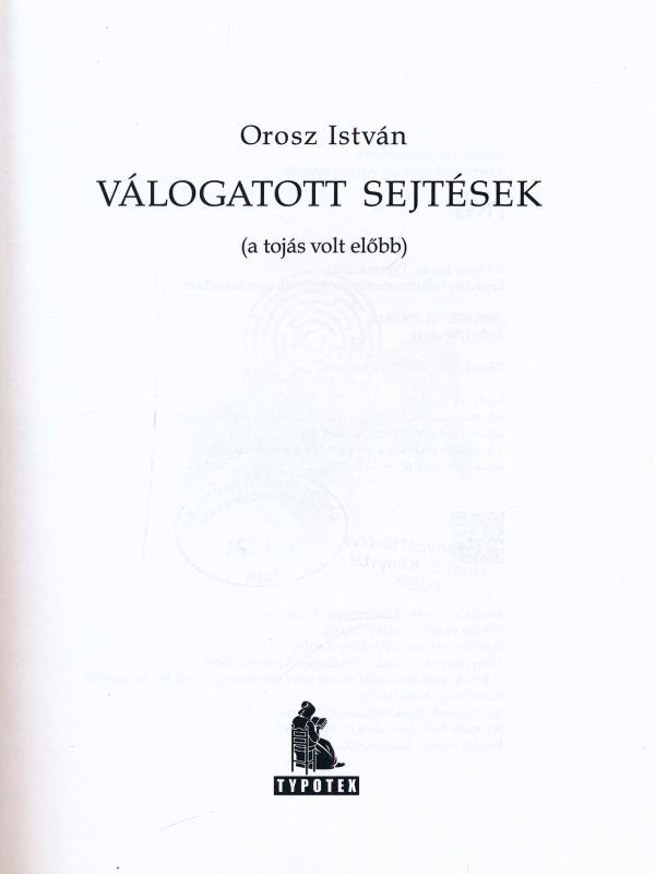 Leírás: Orosz István: Válogatott sejtések. (A tojás volt előbb.) Bp., 2013, Typotex. Kiadói papírkötés, volt könyvtári példány.