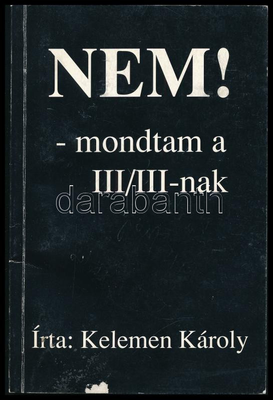 Leírás: Kelemen Károly: Nem! Mondtam a III/III-nak. DEDIKÁLT! H.n.., é.n. (1994 k.), k.n.. 68 p. Kiadói papírkötésben, kissé sérült borítóval.