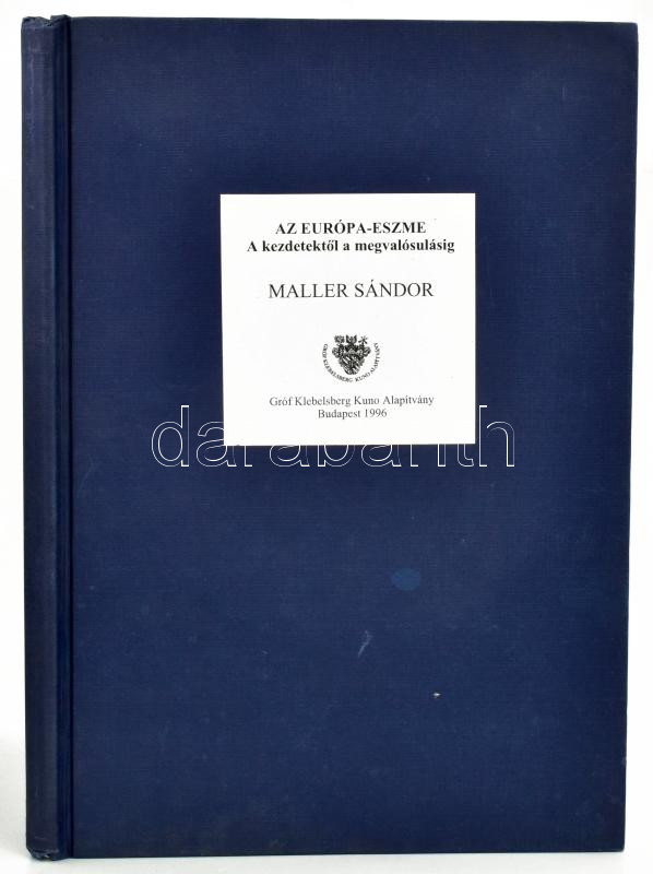 Maller Sándor: Az Európa-eszme. A kezdetektől a megvalósulásig. Szerk.: Klebelsberg Éva. Bp., 1996, Gróf Klebelsberg Kuno Alapítvány. Egészvászon-kötésben, enyhén kopott borítóval. DEDIKÁLT példány, a szerző, Maller Sándor dedikációjával és a szerkesztő, Klebelsberg Éva aláírásával.