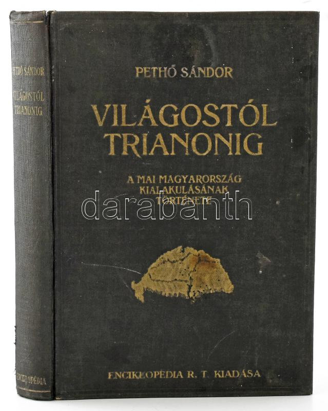 PethÅ‘ Sándor - Fodor Ferenc: Világostól Trianonig. A mai Magyarország kialakulásának története. Bp., 1925, Enciklopédia, VIII+324+(4) p. Második kiadás. Kiadói aranyozott egészvászon-kötés, Gottermayer-kötés, kissé sérült, foltos borÃtóval, helyenként foltos lapokkal.