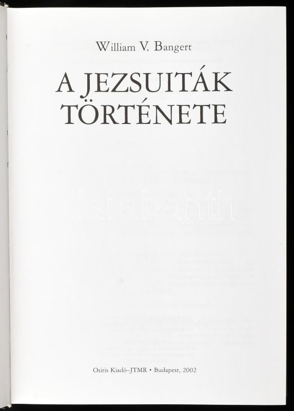 Leírás: William V. Bangert: A jezsuiták története. Ford.: Szelenge Judit. Bp., 2002, Osiris - JTMR. Kiadói kartonált papírkötés.