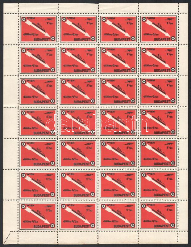 Leírás: 1930 Wien-Budapest légiposta piros reklámbélyeg 28 darabos teljes ív