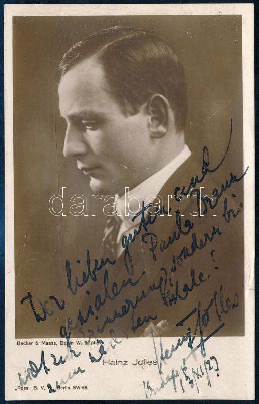 1929 Henry Jolles (Heinz-Frederic Jolles,1902-1965) német zonograművész és zeneszerző DEDIKÁLT képeslapja Braun Paula (1881-1962) zongoraművész, zenepedagógus, főiskolai tanár részére.