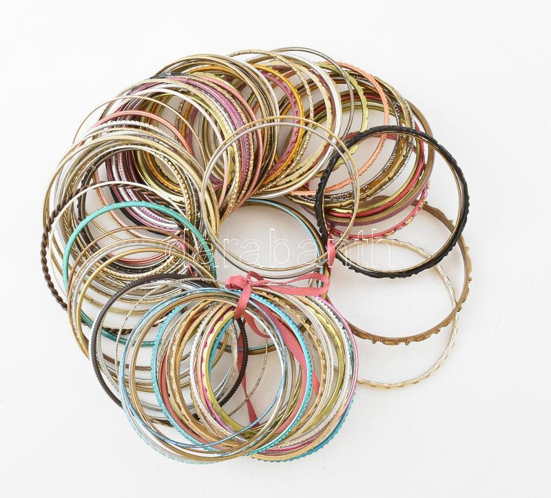 Leírás: cca 100 darab bizsu karkötő, közte réz karkötőkkel