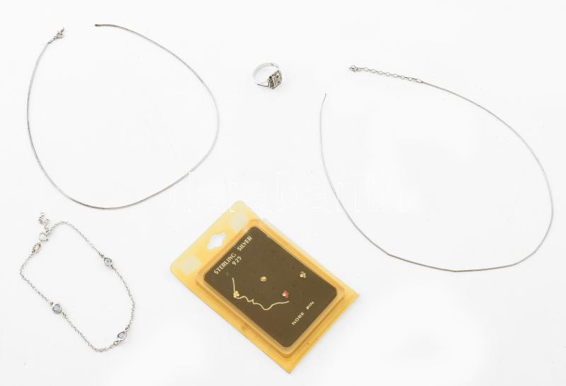 Leírás: Gyűrű + karkötő + szakadt ezüst nyaklánc + 4 darab ezüst (Ag) orrpiercing