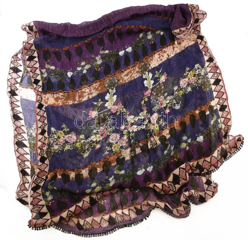 Leírás: Lila alapon virágmintás stóla, cca 100x200 cm