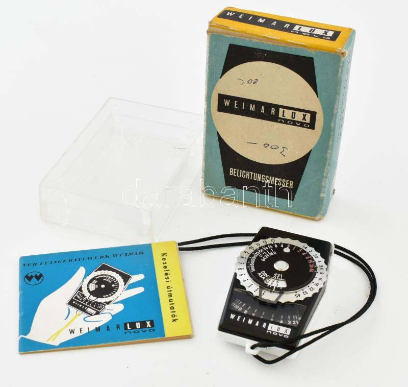 Weimar Lux fénymérő eredeti műanyag tokjában és dobozában, jó állapotb... https://www.darabanth.com/hu/448-Gyorsarveres/448.0/Mutargy-papirregiseg-egyeb/Fenykepezogepek-kamerak-kellekek~1000013/Weimar-Lux-fenymero-eredeti-muanyag-tokjaban-es-dobozaban-jo-allapotban~II2966861