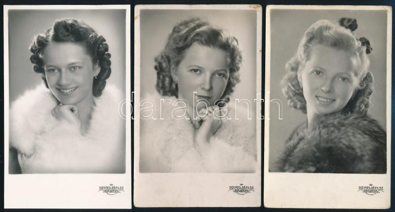 1942 Hölgyportrék, 3 db fotólap, 9×13 cm https://www.darabanth.com/hu/448-Gyorsarveres/448.0/Mutargy-papirregiseg-egyeb/Foto~2000027/1942-Holgyportrek-3-db-fotolap-9C39713-cm~II2976013