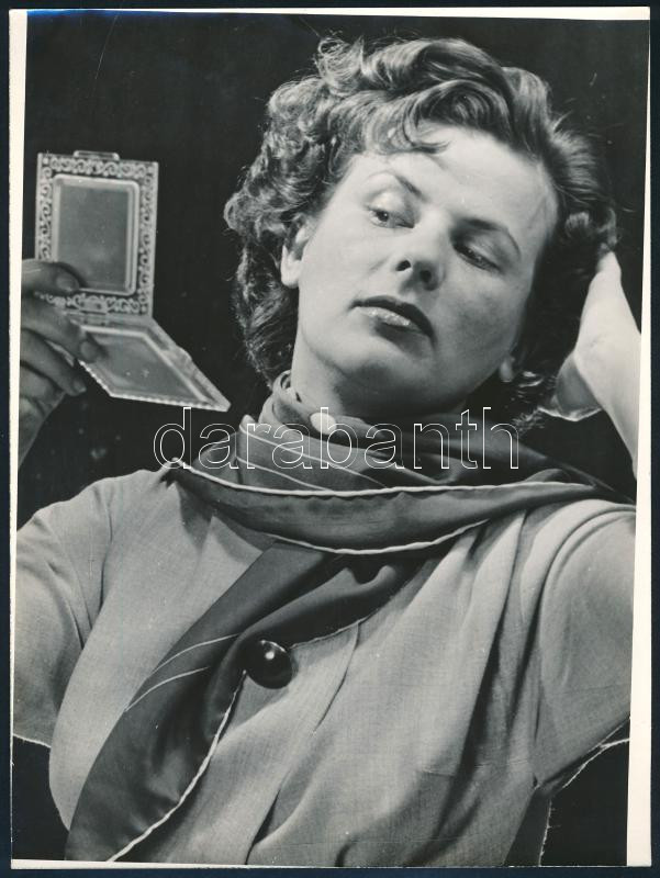 Leírás: 1952 Beliczay Pál budapesti fotóművész jelzés nélküli vintage fotóművészeti alkotása (Tükröm, tükröm ...), ezüst zselatinos fotópapíron, 24x18 cm
