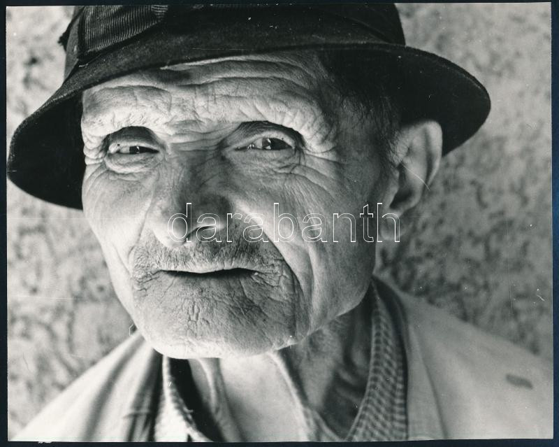 1974 Martincsek Gábor békéscsabai fotóművész feliratozott, vintage fotóművészeti alkotása (Portré), ezüst zselatinos fotópapíron, a kép a néhai Népművelési Intézet által, Szekszárdon megrendezett központi fotós alkotótelep (eredeti fotókat tartalmazó) albumából származik, 16x20 cm