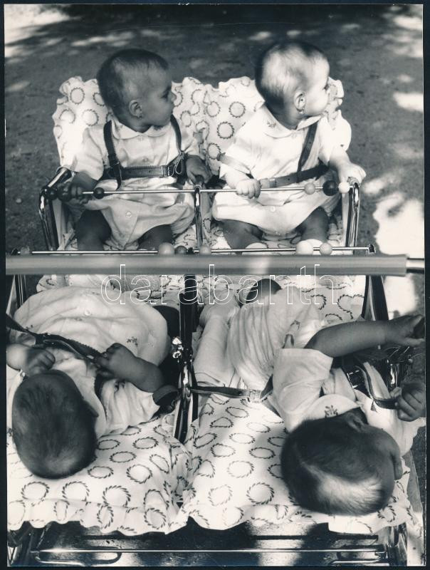 Leírás: 1975 Lipóczi József: A csepregi négyes ikrek című, feliratozott vintage fotó, ezüst zselatinos fotópapíron, 23,4x17,6 cm