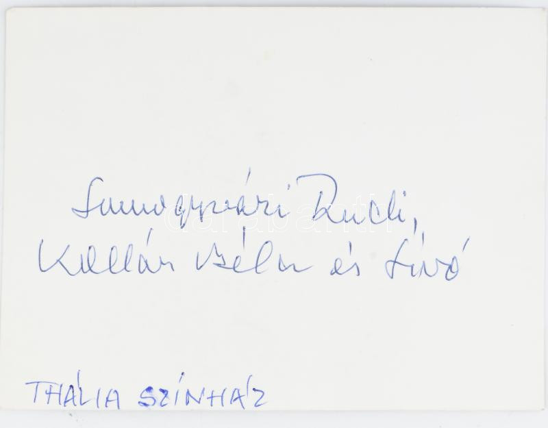 Leírás: Somogyvári Rudolf, Kollár Béla színművészek és Sívó Emil rendező feliratozott fotó 12x9 cm