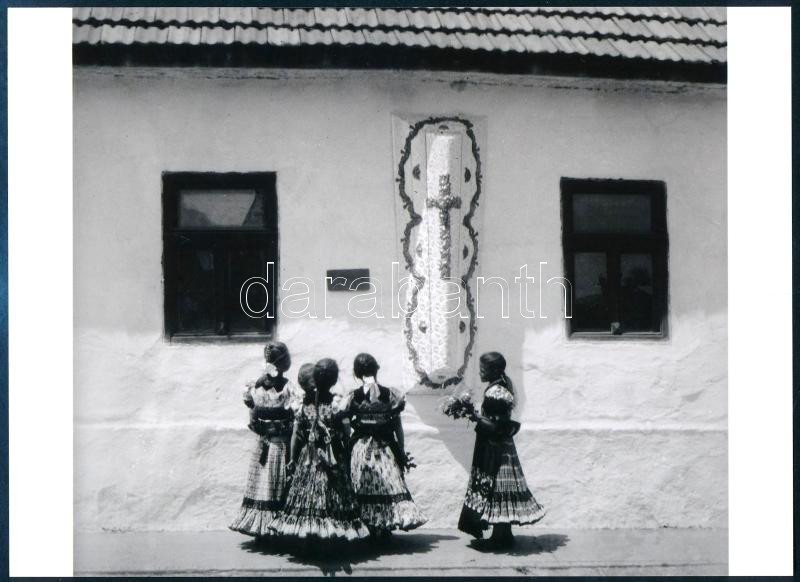 cca 1928 Mezőkövesd, koporsó fedél a házfalra erősítve, Kerny István (1879-1963) budapesti fotóművész üveglemezes felvételéről 1 db modern nagyítás, 15x21 cm