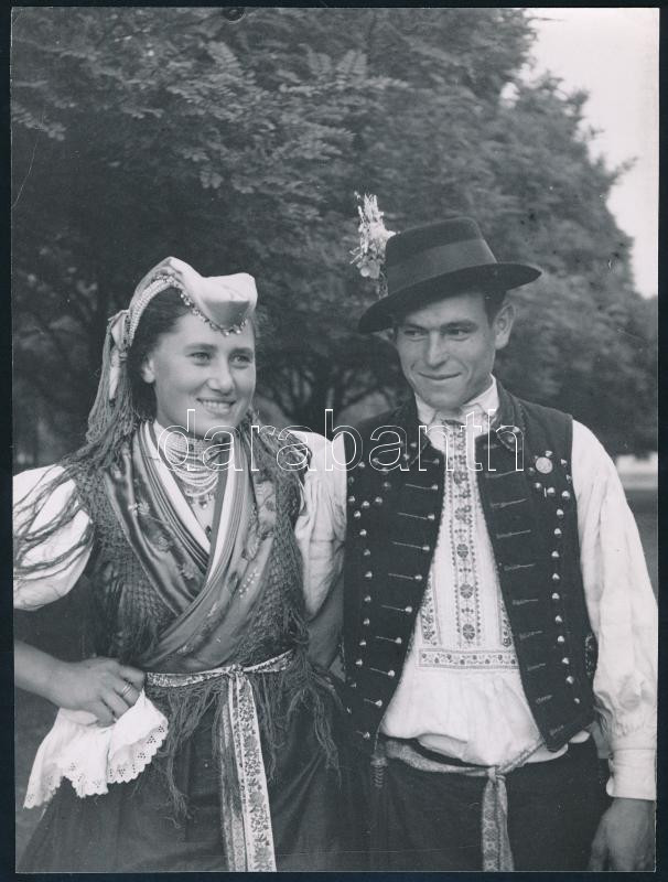 cca 1930-1940 Szendrő István (1908-2000): Fiatal pár hollókői népvisel... https://www.darabanth.com/hu/448-Gyorsarveres/448.0/Mutargy-papirregiseg-egyeb/Foto~2000027/cca-1930-1940-Szendro-Istvan-1908-2000-Fiatal-par-hollokoi-nepviseletben-pecsettel-jelzet~II2972292