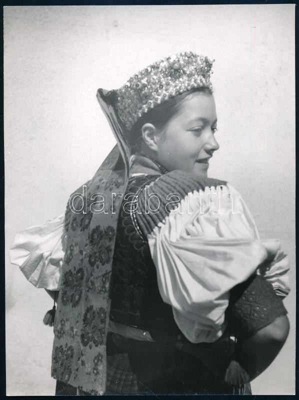 Leírás: cca 1930-1940 Szendrő István (1908-2000): Lány erdélyi, kalotaszentkirályi népviseletben, pecséttel jelzett fotó, 17×23 cm