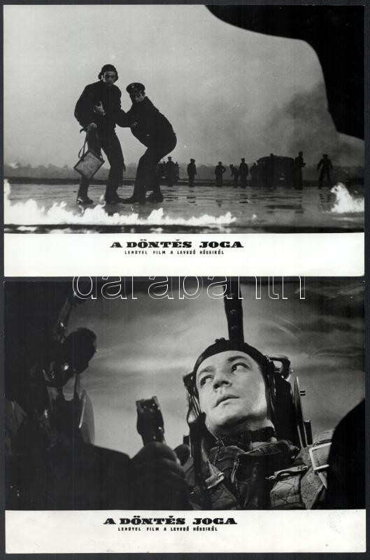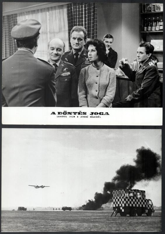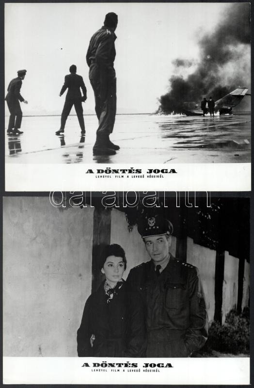 cca 1963 ,,A döntés joga - a levegő hősei" című lengyel film jelenetei és szereplői, 11 db vintage produkciós filmfotó ezüst zselatinos fotópapíron, a használatból eredő (esetleges) kisebb hibákkal, egy képről hiányzik a szövegmező, 18x24 cm