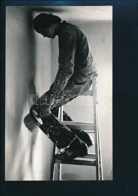 Leírás: cca 1972 Kovács Pál: Szobafestő című vintage fotóművészeti alkotása, feliratozva, ezüst zselatinos fotópapíron, 23x14,2 cm