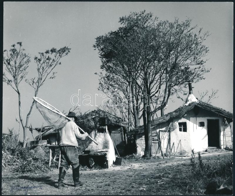 cca 1972 Vincze János (1922-1999) kecskeméti fotóművész hagyatékából, 2 db pecséttel jelzett, vintage fotóművészeti alkotás (Halásztanya + Varsák), ezüst zselatinos fotópapíron, 17,5x20,7 cm és 18x24 cm