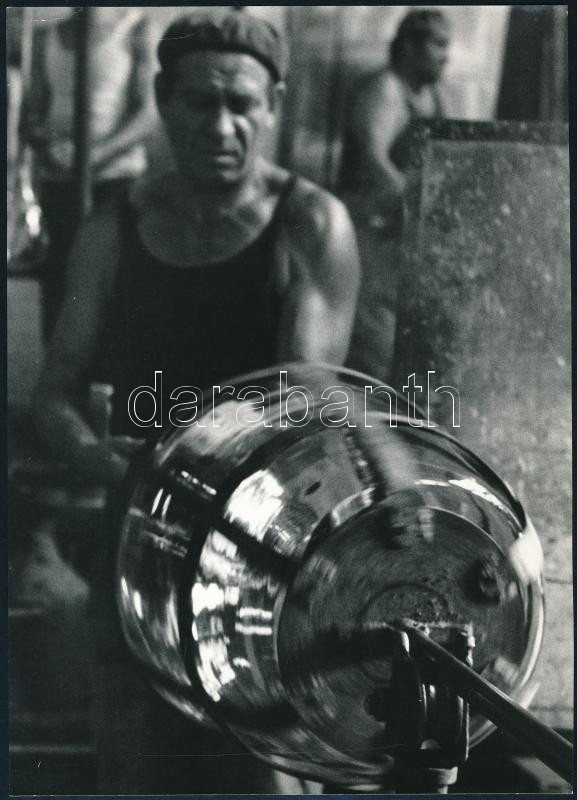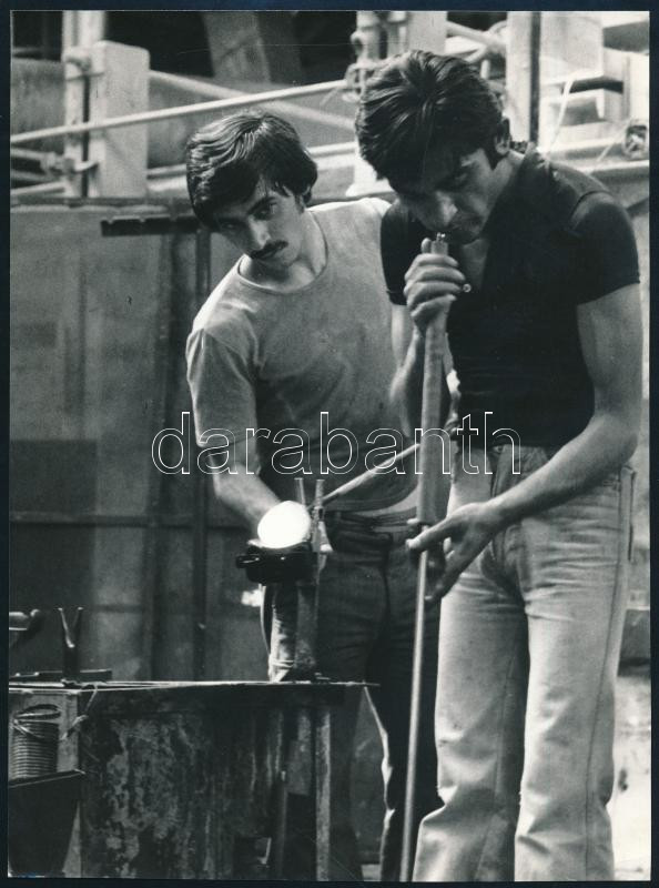 cca 1978 Szabó László székesfehérvári fotóművész nevével jelzett 2 db vintage fotóművészeti alkotás (Üvegfúvók I-II.), ezüst zselatinos fotópapíron, szélén kisebb törésvonal, 24x17,5 cm