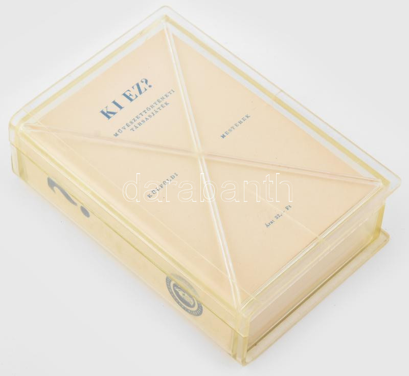 1964 Ki ez? Művészettörténeti társasjáték, külföldi mesterek kártyaját... https://www.darabanth.com/hu/448-Gyorsarveres/448.0/Mutargy-papirregiseg-egyeb/Jatekok~1000015/1964-Ki-ez-Muveszettorteneti-tarsasjatek-kulfoldi-mesterek-kartyajatek-komplett-100-~II2965146