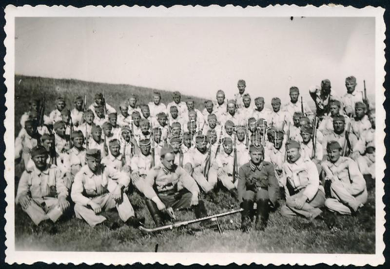 Magyar katonák lőfegyverrel, fotó, 6x9 cm