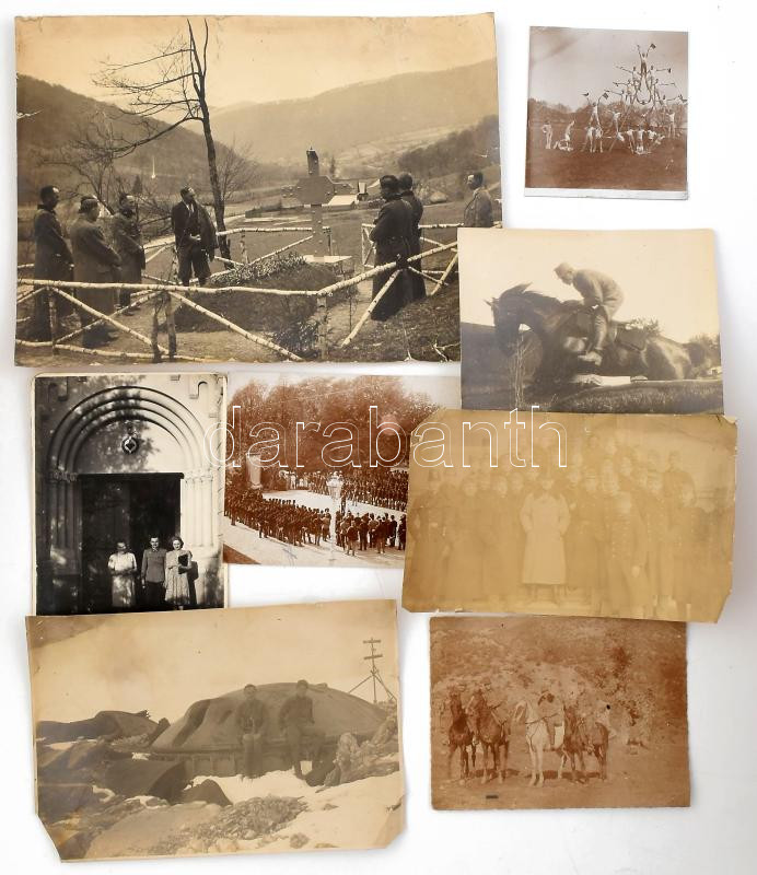 cca 1914-1940 Katonai fotó tétel, 8 db, főként I. világháború, közte hegyi bunker 2000 m magasságban, ünnepség, tornagyakorlat; vegyes állapotban, 22,5x16,5 cm és 8x7,5 cm között