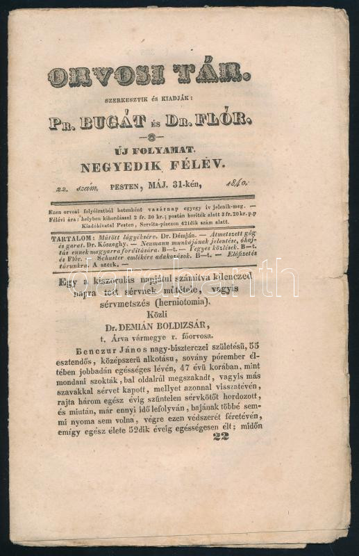 1840 Pest, Az Orvosi Tár 4 db száma https://www.darabanth.com/hu/448-Gyorsarveres/448.0/Mutargy-papirregiseg-egyeb/Nyomtatvanyok~2000005/1840-Pest-Az-Orvosi-Tar-4-db-szama~II2976967