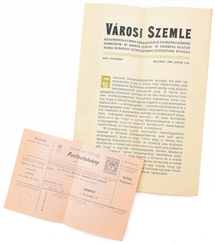 1908 Városi szemle c. folyóirat bemutató száma és előfizetési szelvény... https://www.darabanth.com/hu/448-Gyorsarveres/448.0/Mutargy-papirregiseg-egyeb/Nyomtatvanyok~2000005/1908-Varosi-szemle-c-folyoirat-bemutato-szama-es-elofizetesi-szelveny-4-p~II2965752
